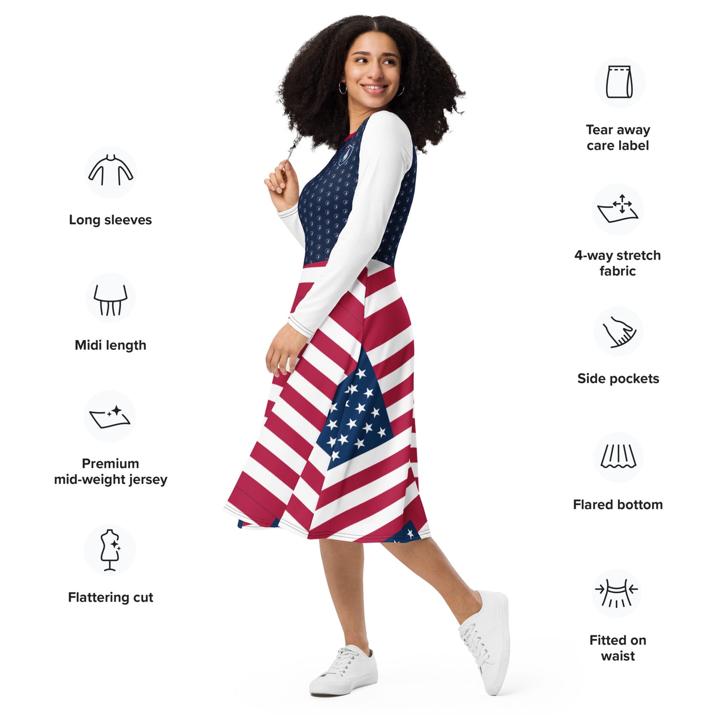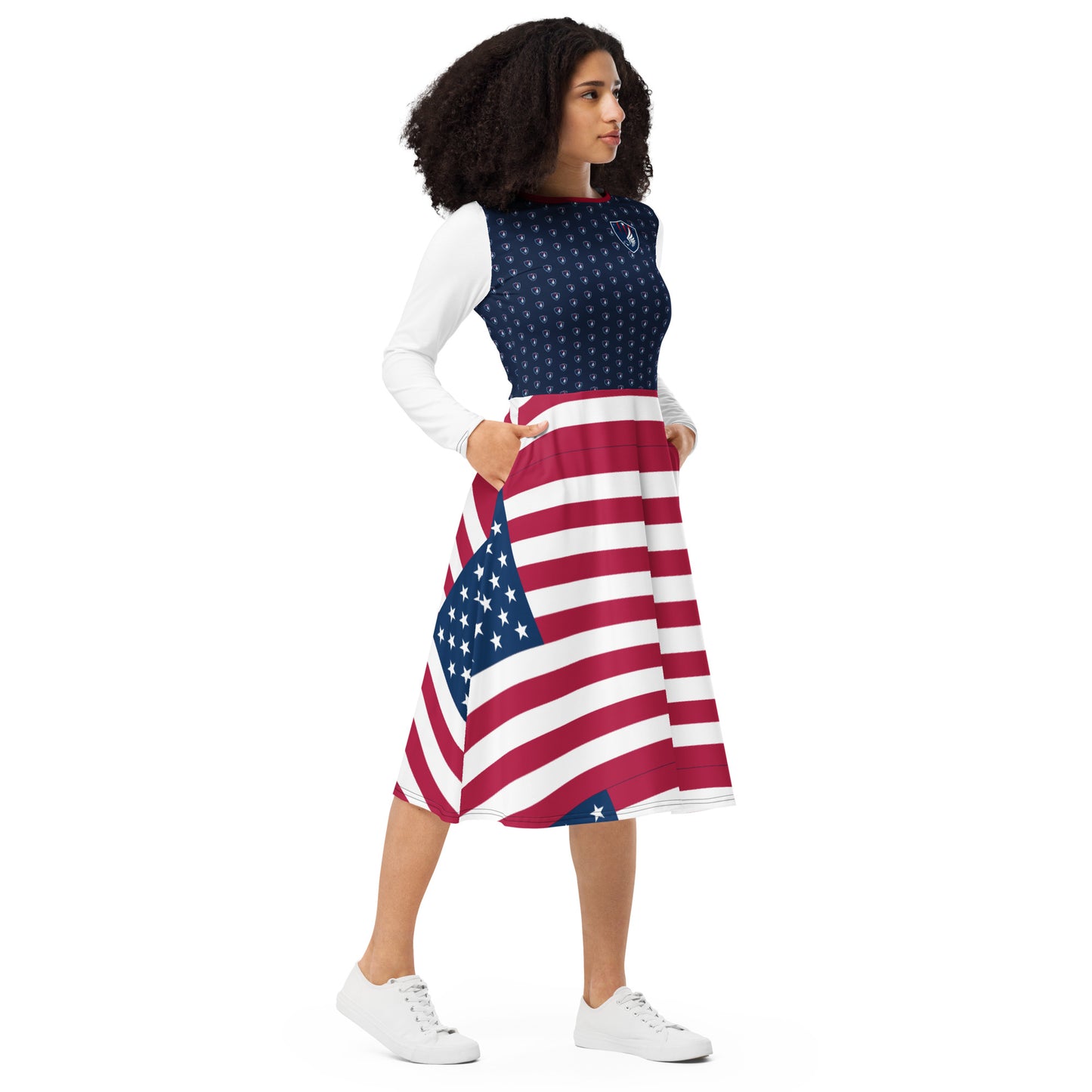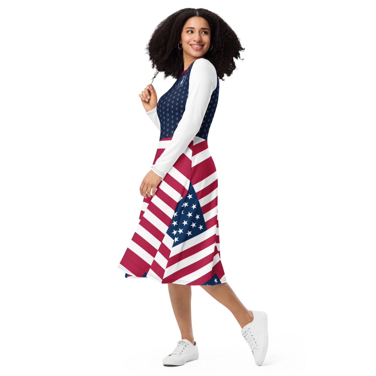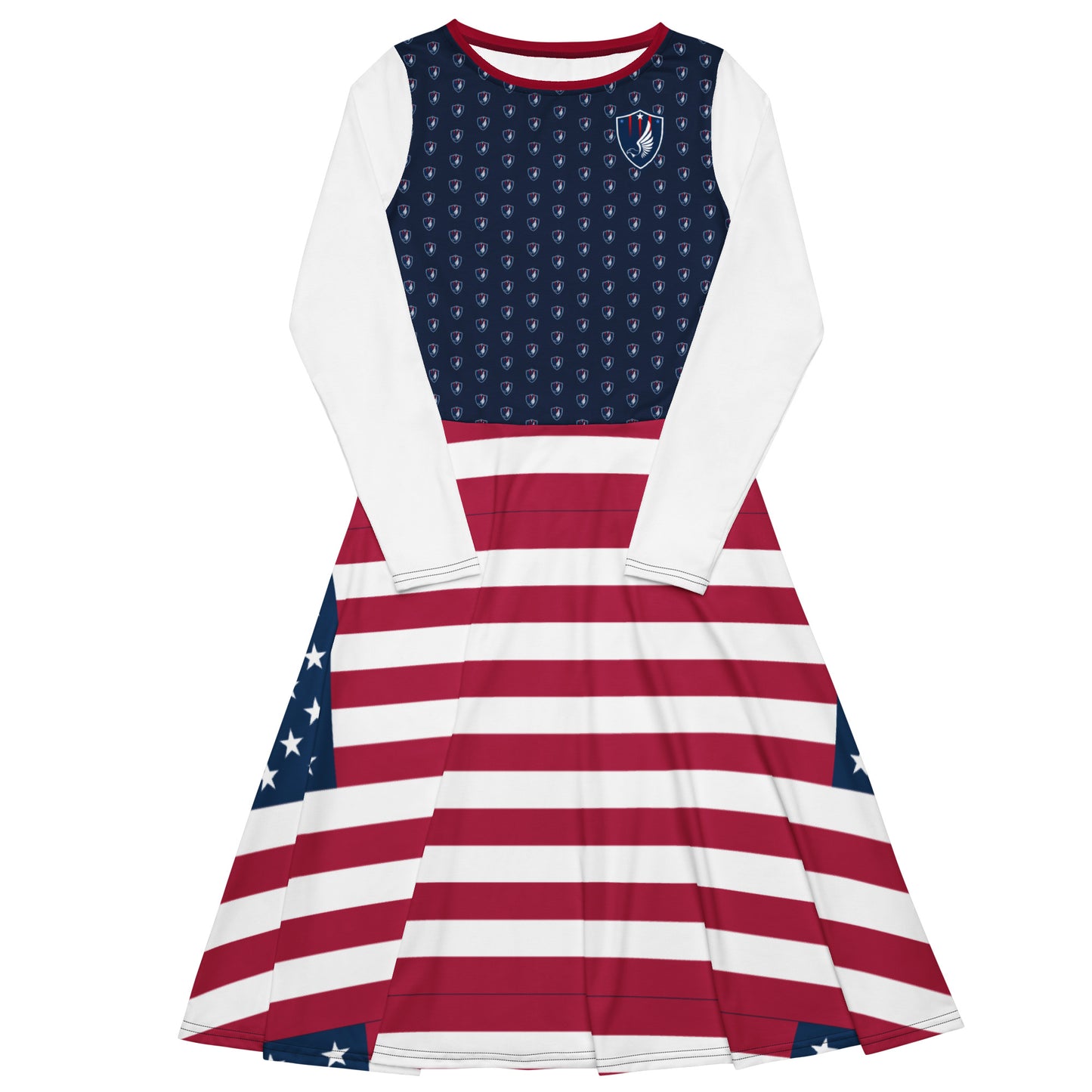 All-over print long sleeve midi dress Eagle & Stripes