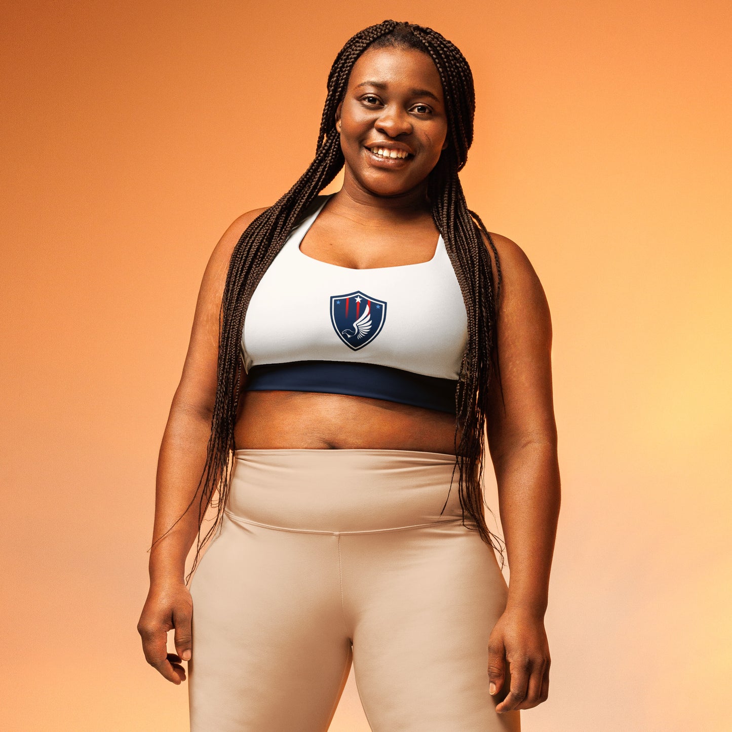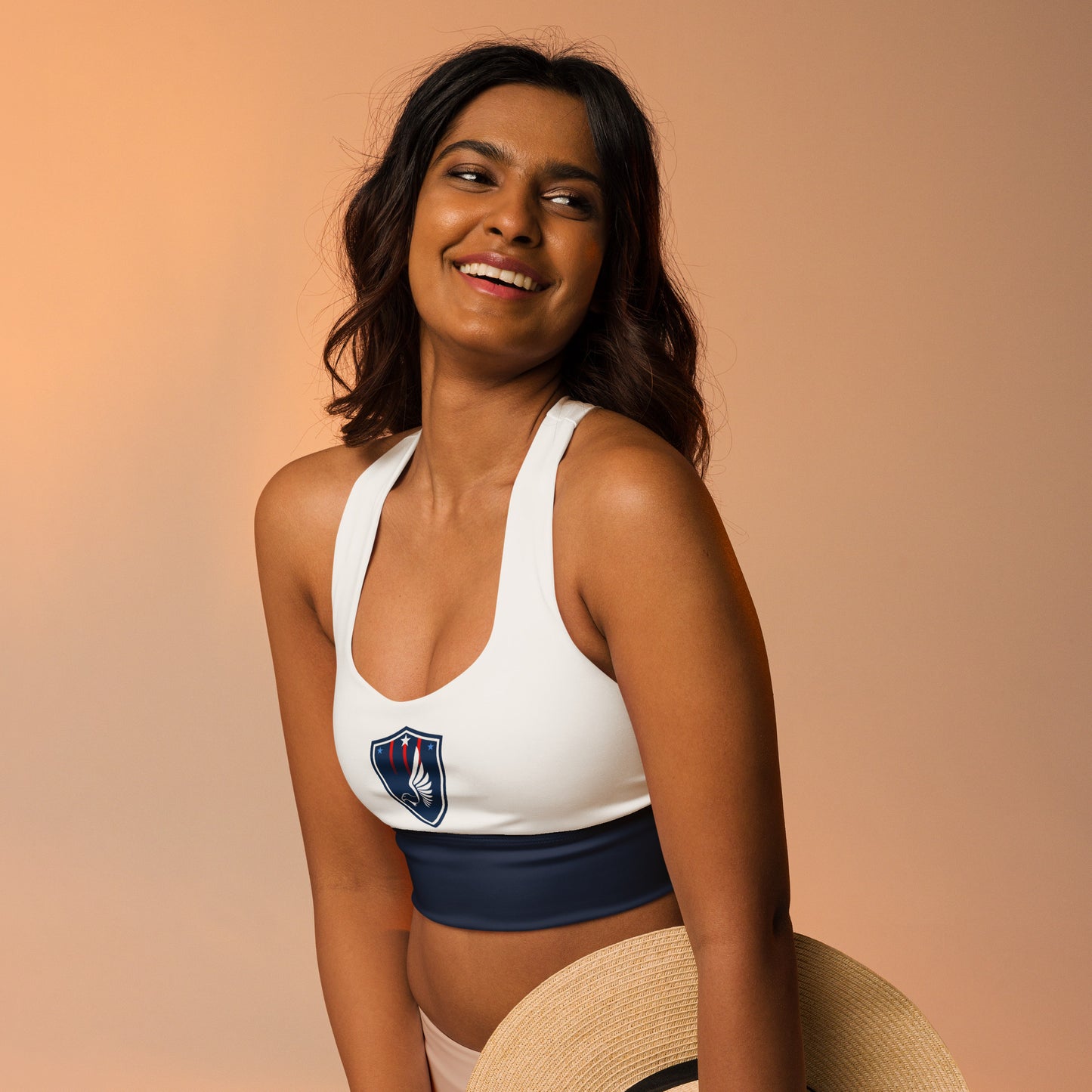 All-Over Print Recycled Longline Sports Bra Eagle & Stripes
