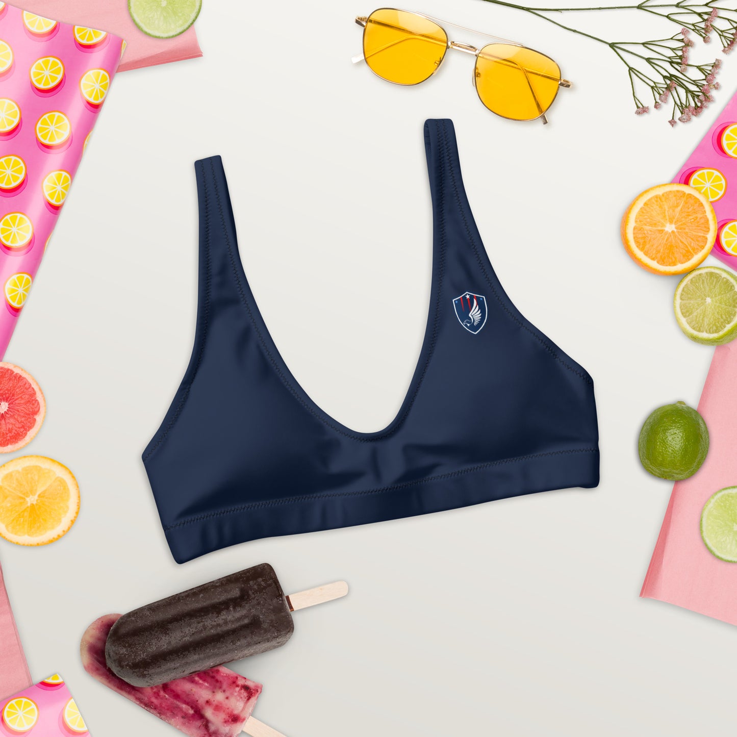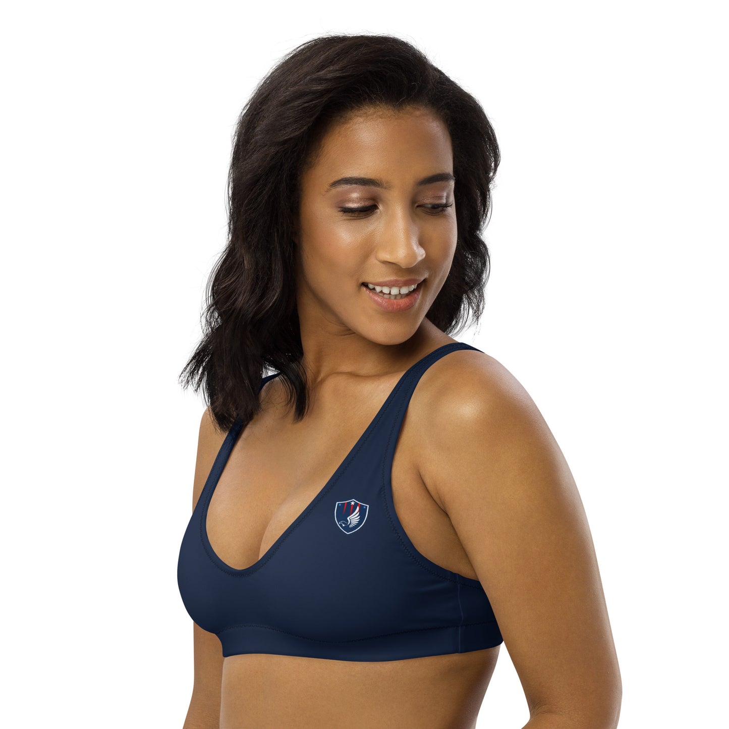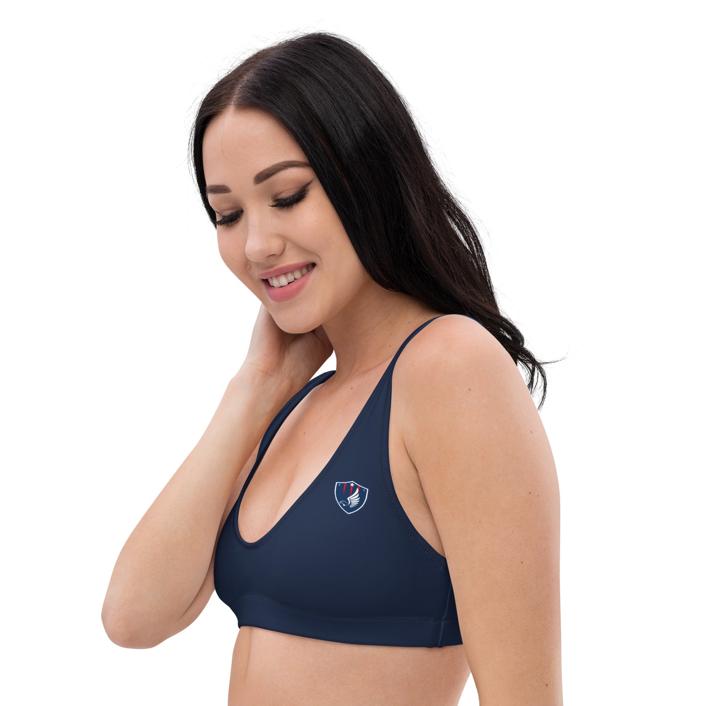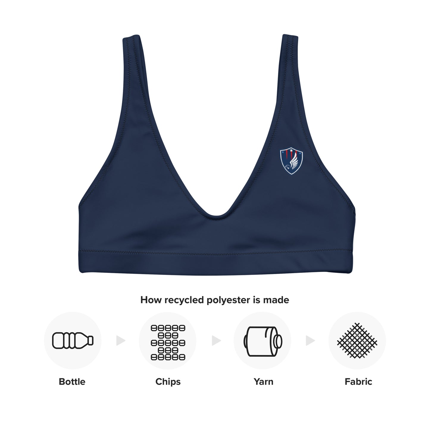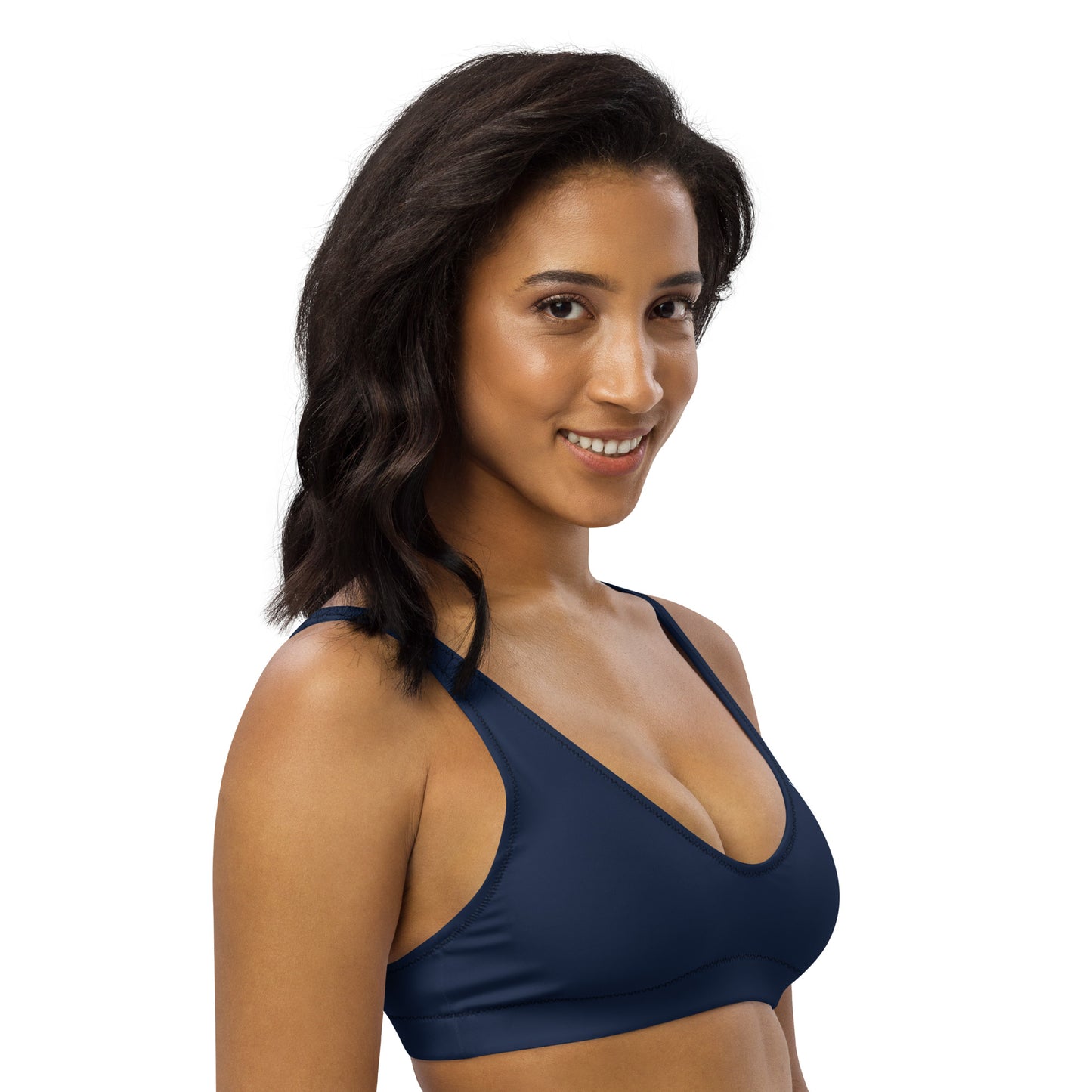 Get this Recycled padded bikini top for your summer adventures! It’s comfortable and includes pads you can remove. To make this top even more versatile, mix and match it with different bikini bottoms for a trendy look.