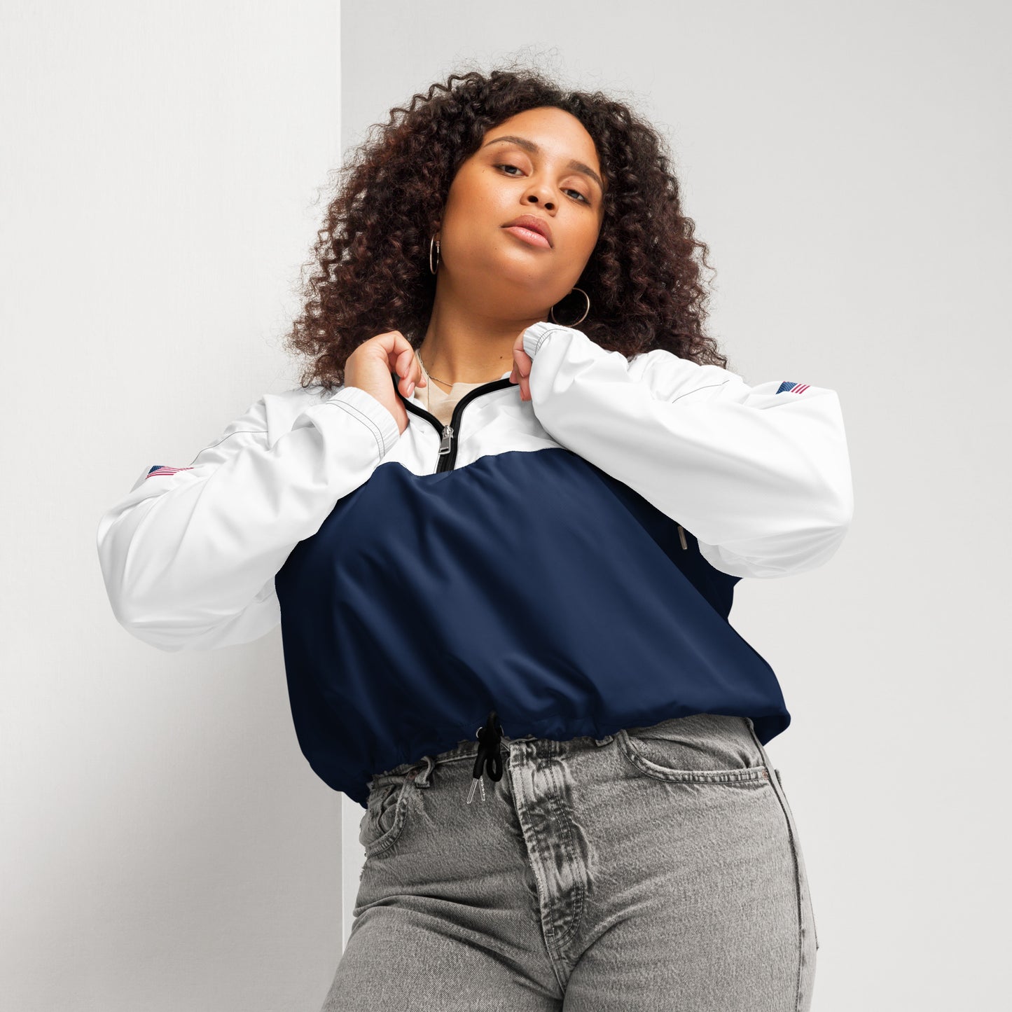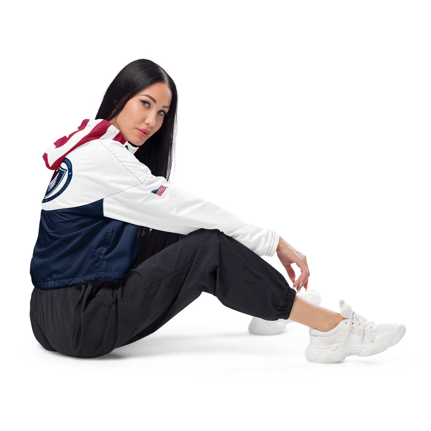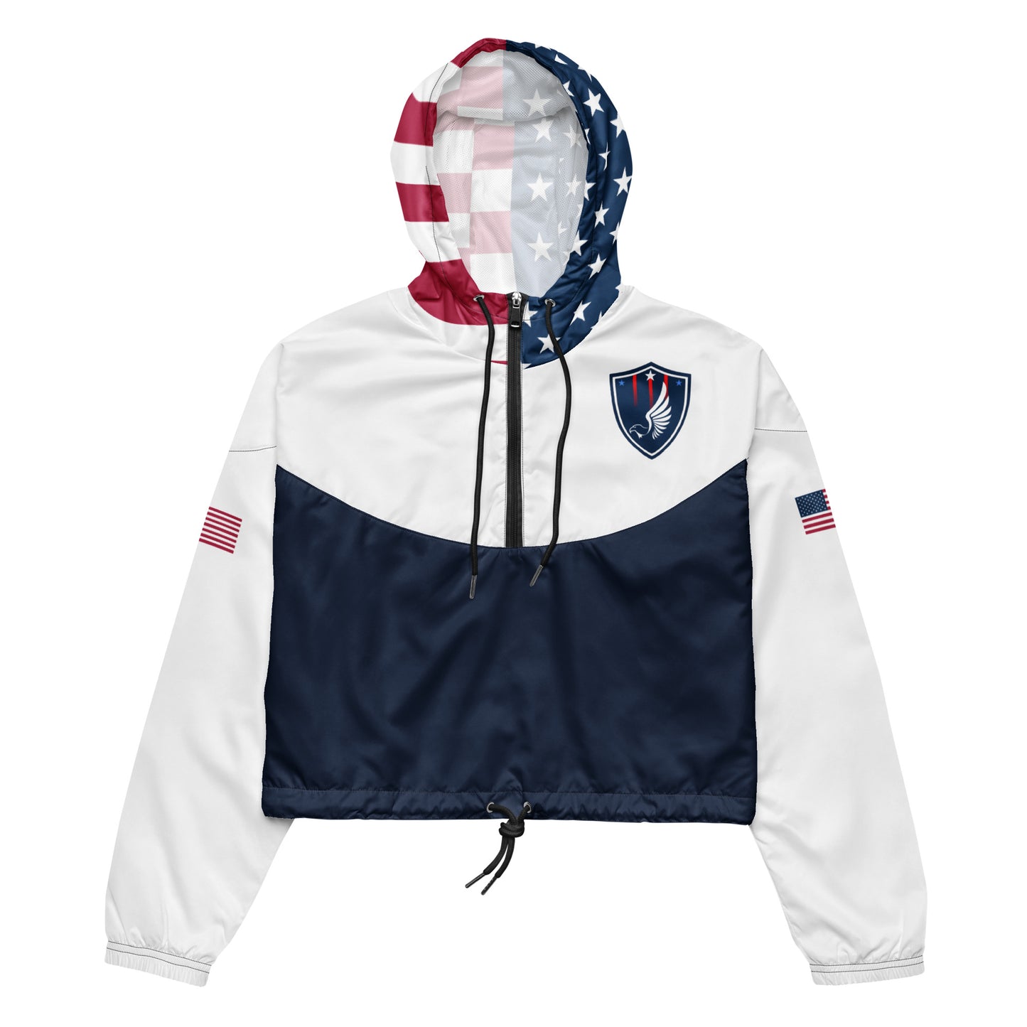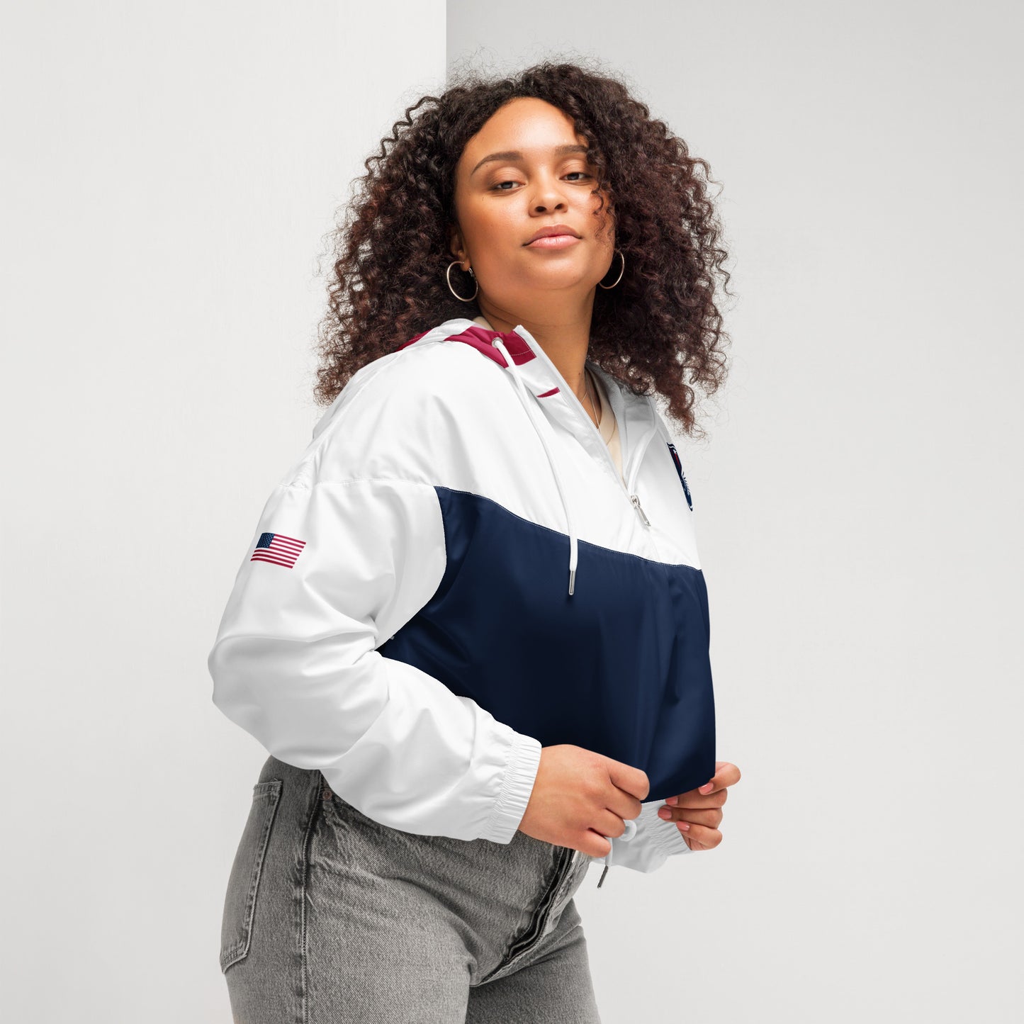 Hike in style without the rain getting in the way—this cropped windbreaker is lightweight, waterproof, and suitable for every kind of adventure. Features include side-slit pockets, breathable mesh lining, and adjustable drawcords on the hood and waist to support all your stylish outdoor looks.